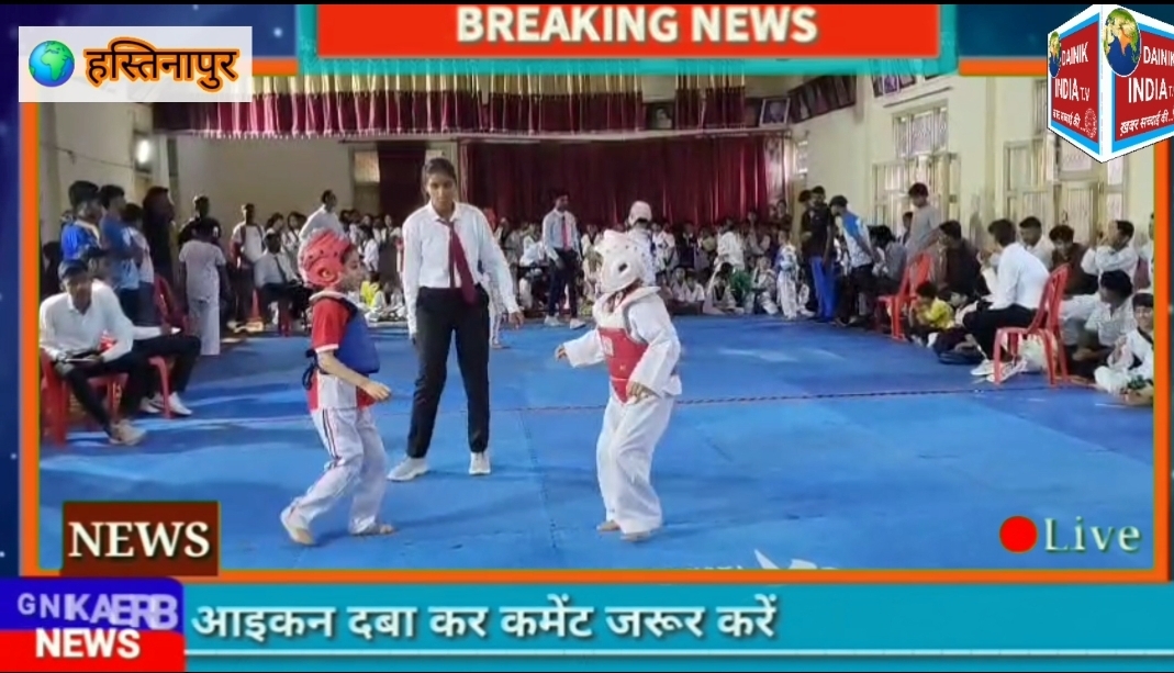 हस्तिनापुर कस्बा स्थित जैन इंटरनेशनल स्कूल में आज ओपन इंटर ताइक्वांडो चैंपियनशिप की प्रतियोगिता
